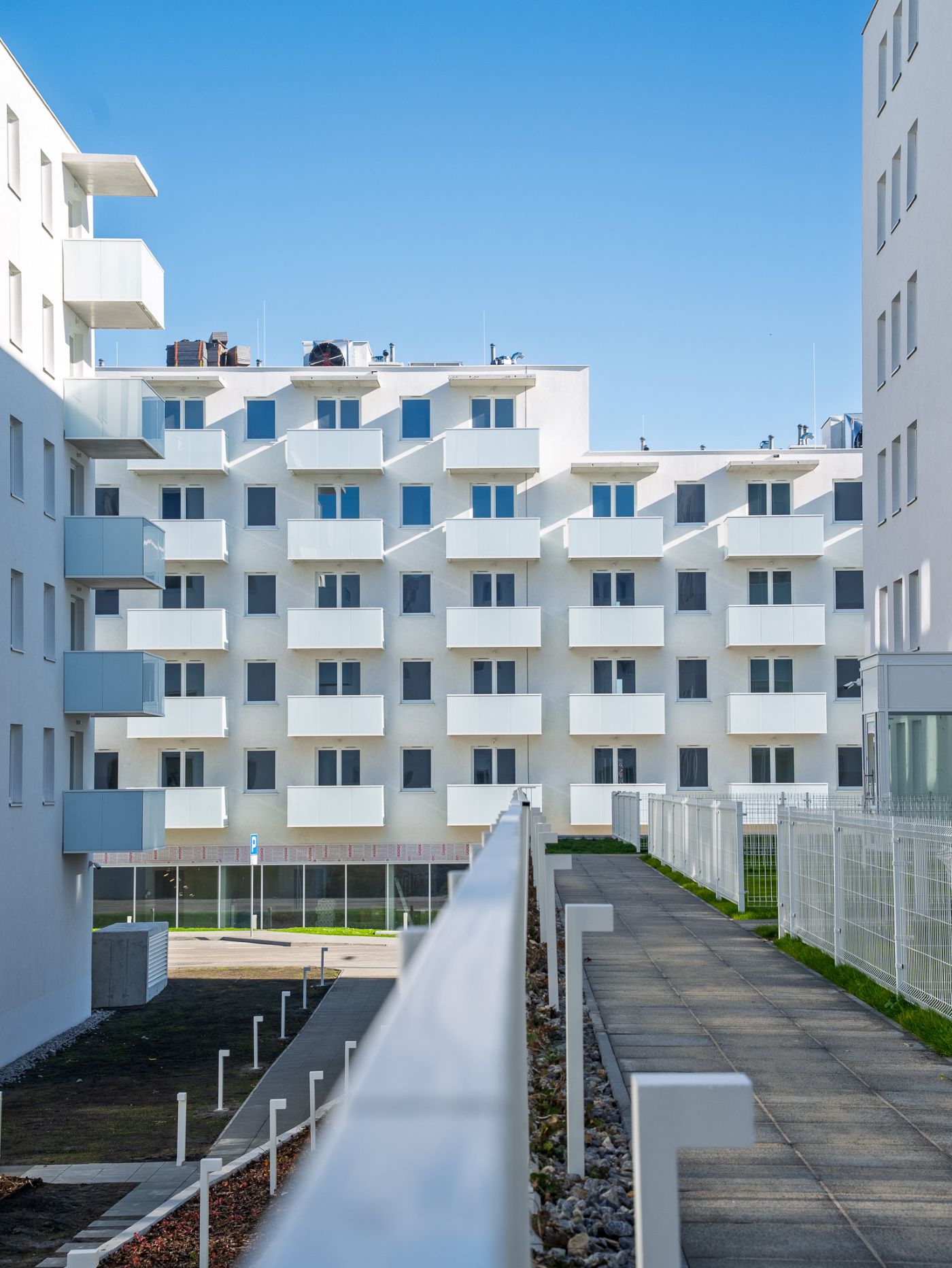 Na osiedlu trwają ostatnie prace porządkowe, wykańczanie i meblowanie mieszkań, za które odpowiada generalny wykonawca, firma API sp. z o.o. Zespół budynków powstał według projektu pracowni Stelmach i Partnerzy, znanej z nowoczesnych, funkcjonalnych realizacji, takich jak m.in. Centrum Spotkania Kultur w Lublinie. Architekci postawili na proste, jasne bryły o zmiennej wysokości od 5 do 7 kondygnacji. Charakterystycznym elementem elewacji są balkony przypisane do każdego mieszkania, które nadają zabudowie lekkości i rytmu.