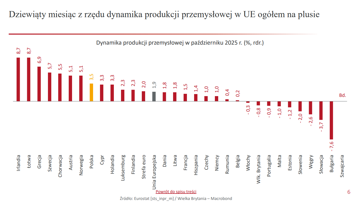 Dynamika PKB Polski w Q3 2025 r. (+3,8% rdr.) była trzecią najwyższą spośród wszystkich krajów UE i EFTA.