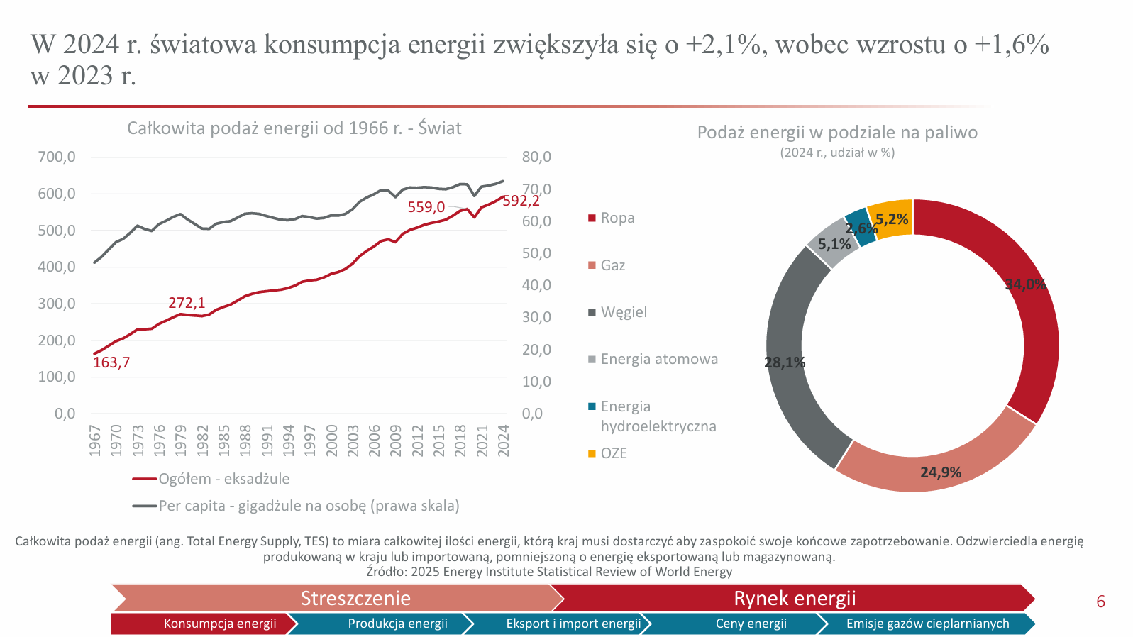 Udział Rosji w imporcie gazu do Unii Europejskiej w 2024 r. wyniósł 11,4% i choć znacznie spadł w porównaniu do okresu sprzed pełnoskalowej wojny w Ukrainie, to Rosja pozostała relatywnie istotnym dostawcą tego surowca do UE.